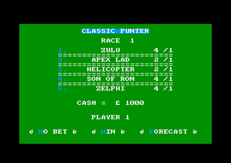 Plus d'informations à propos de Classic punter sur Spectrum Computing